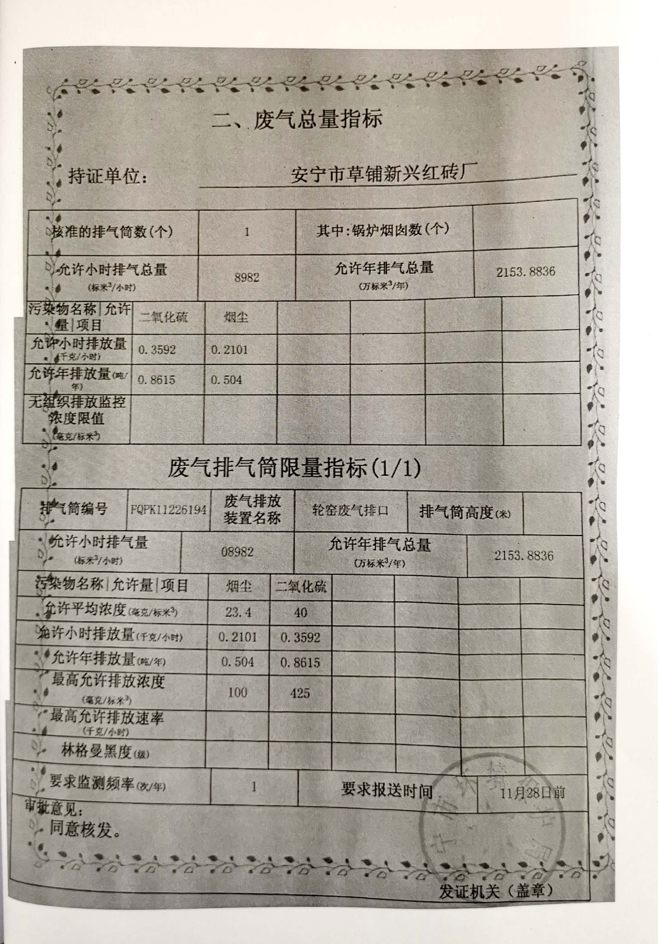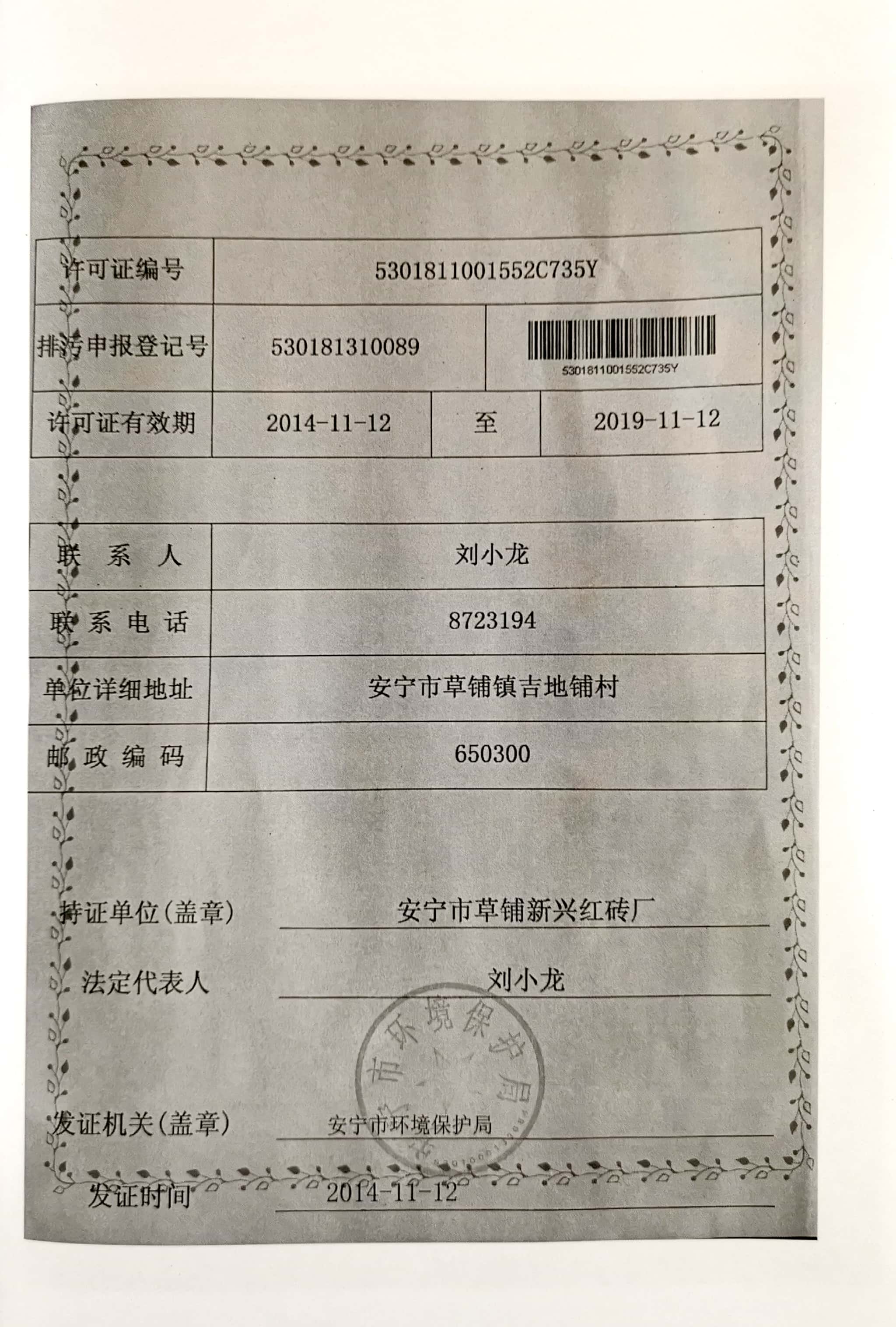 項目名稱:安寧(ning)市草(cao)鋪(pu)新(xin)興紅磚廠新(xin)增脫硫設施項目;