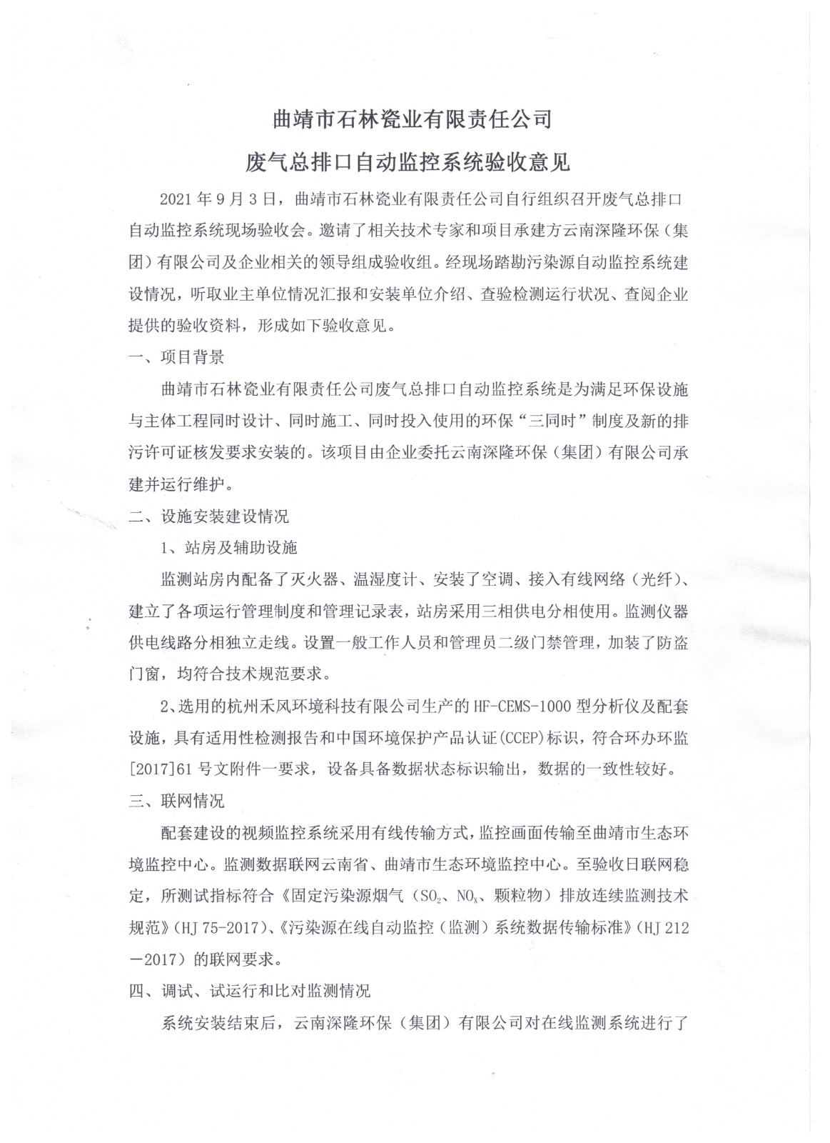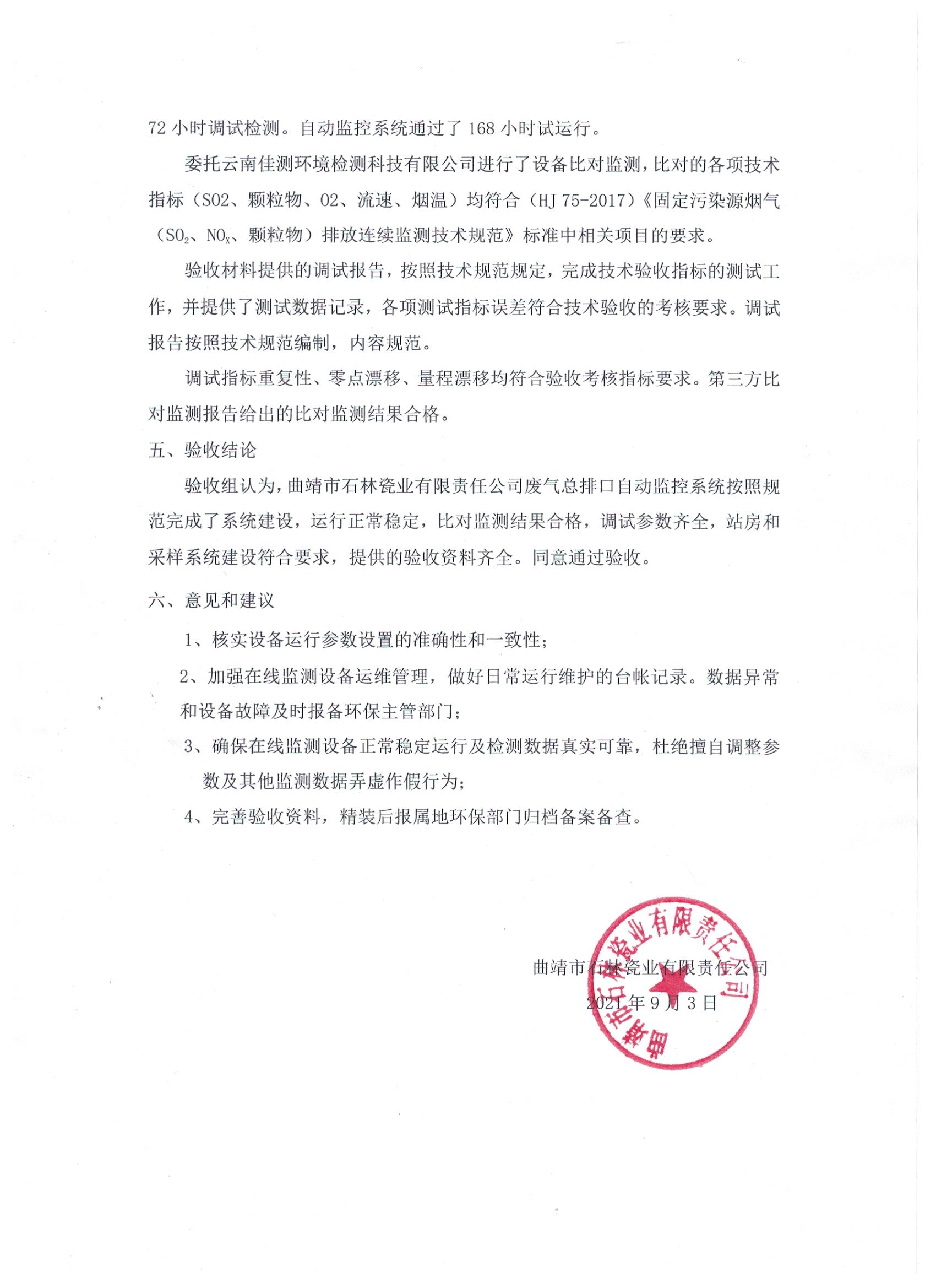 曲靖市石林瓷業有限責任公司廢氣總排口自動監控系統驗收報�?定稿).pdf