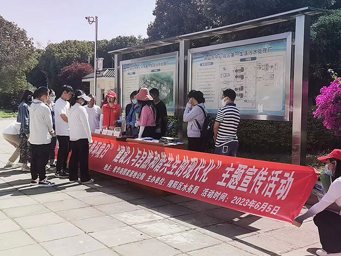 2023年6月5日保山市中(zhong)心(xin)城區(qu)(qu)第一生活污水處理廠,廠區(qu)(qu)內(nei)環保設施對(dui)公眾開放,各(ge)行各(ge)業的公眾代表到保山一廠進行參觀了解。