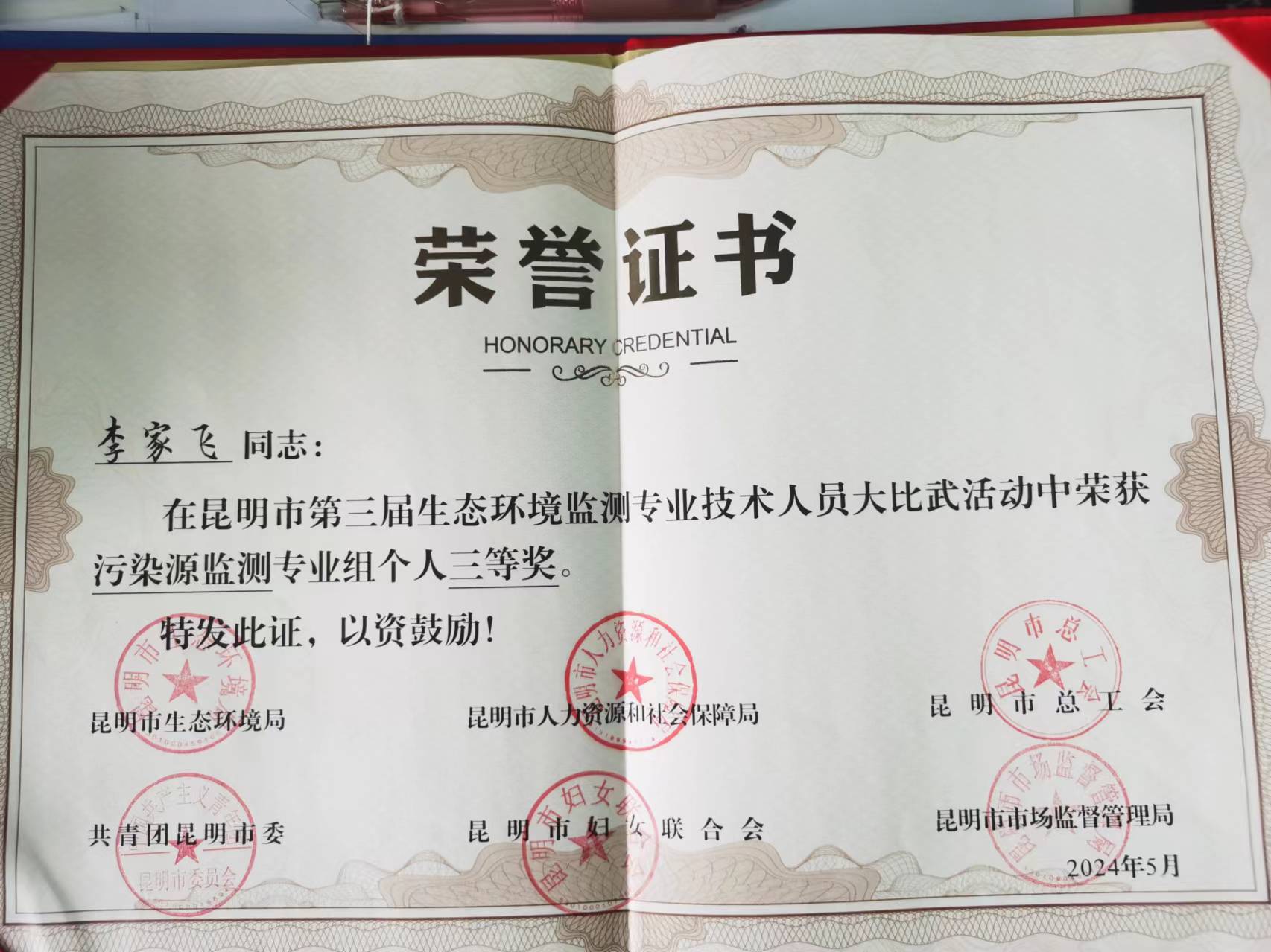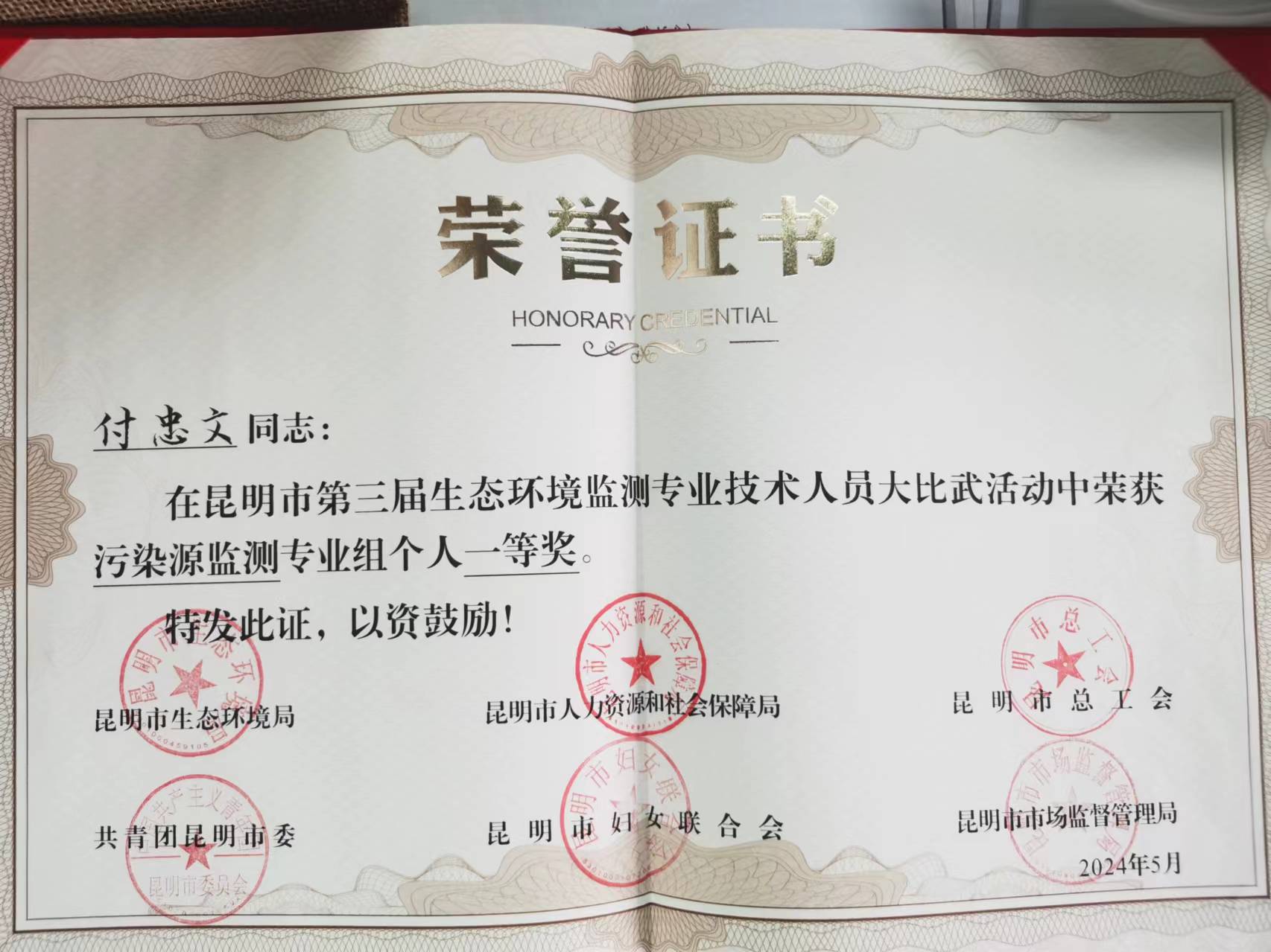 近日(ri),由昆明市(shi)(shi)生態(tai)環境(jing)局、人(ren)力資源社(she)(she)會(hui)(hui)保障局、總工會(hui)(hui)、共青(qing)團、婦聯和市(shi)(shi)場監(jian)督管理局聯合(he)舉辦的(de)“昆明市(shi)(shi)第三屆生態(tai)環境(jing)監(jian)測(ce)專(zhuan)(zhuan)業(ye)技(ji)術人(ren)員大比武”活動圓滿落(luo)下帷幕。此次大比武旨在(zai)深入貫徹黨的(de)二十大精神,加(jia)強(qiang)生態(tai)環境(jing)保護隊(dui)伍建設(she),提升監(jian)測(ce)技(ji)術人(ren)員能力水平(ping)。大比武活動以“監(jian)測(ce)先行、監(jian)測(ce)靈敏、監(jian)測(ce)準確”為(wei)導(dao)向,分(fen)為(wei)實驗室分(fen)析、污(wu)(wu)染(ran)源監(jian)測(ce)、應(ying)急監(jian)測(ce)、環境(jing)空氣質量自動監(jian)測(ce)、綜合(he)評價(jia)五個(ge)專(zhuan)(zhuan)業(ye)組(zu)。經過激烈的(de)角逐。云南塵清環境(jing)監(jian)測(ce)有限公司的(de)付(fu)忠文,憑借扎實的(de)專(zhuan)(zhuan)業(ye)知識和精湛的(de)操作技(ji)能,榮(rong)獲社(she)(she)會(hui)(hui)機構隊(dui)污(wu)(wu)染(ran)源監(jian)測(ce)專(zhuan)(zhuan)業(ye)組(zu)個(ge)人(ren)一等(deng)(deng)(deng)獎(jiang),展現(xian)了公司技(ji)術人(ren)員的(de)高水平(ping)實力。同(tong)時,公司同(tong)事(shi)李家飛,榮(rong)獲了社(she)(she)會(hui)(hui)機構隊(dui)污(wu)(wu)染(ran)源監(jian)測(ce)專(zhuan)(zhuan)業(ye)組(zu)個(ge)人(ren)三等(deng)(deng)(deng)獎(jiang),樊志龍在(zai)社(she)(she)會(hui)(hui)機構隊(dui)實驗室分(fen)析專(zhuan)(zhuan)業(ye)組(zu)中脫穎(ying)而出(chu),榮(rong)獲個(ge)人(ren)一等(deng)(deng)(deng)獎(jiang),為(wei)公司贏得了榮(rong)譽。